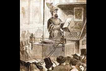 Un des types de personnages parisiens les plus pittoresques des camelots de boulevard avec Duchêne, l’arracheur de dents, sous le second empire. Mangin attirait les foules, dès qu’il s’arrêtait avec son attelage étoilé sur une place publique, le casque empanaché scintillant, carapaçnné comme un soldat moyenâgeux. C’était le plus souvent place de la Bourse, de la Madeleine ou du Château d’eau. Il était parmi les célébrités de la rue la plus incontestable et le plus incontestée. Il est le roi de la place publique et jouit de la foule comme d’une femme publique qui aime à trouver un homme qui l’injurie et qui la batte, comme l'Indiana de George Sand "toujours prête à revenir "plus on la bat, plus elle aime ! Mais que faut-il faire à cette femme pour qu"elle cesse de se traîner aux genoux de son amant !".