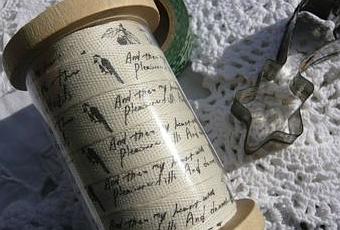 Une bobine de ruban : j'ai craqué sur le stand de Lovely Tape lors du salon Id Créative... elle n'est pas pour moi (bon ben voilà, maman, tu sais maintenant le cadeau qui t'attend dans 10 jours !)... j'adore les bobines de bois. J'en ai vu des miniatures, j'ai failli craquer pour les souris... je me suis retenue !