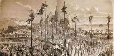 L’apothéose de cette journée, le moment le plus solennel a été celui où tous les prélats réunis sur l’estrade supérieure du flan de la montagne, ont donné la bénédiction pontificale à la ville de Marseille.