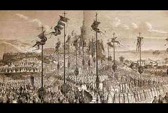 L’apothéose de cette journée, le moment le plus solennel a été celui où tous les prélats réunis sur l’estrade supérieure du flan de la montagne, ont donné la bénédiction pontificale à la ville de Marseille.