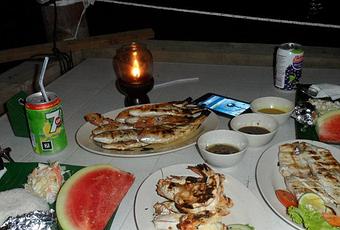 Finalement on se trouve dans l’endroit qui nous a tant fait craqué, et qui était l’une des raisons de ce voyage en Malaisie, on ne pouvaient plus cacher nos émotions. Dîner aux chandelles, au bord d’une plage magnifique, et pleins de poissons qui s’agitent quand on leur donne à manger. Une soirée calme, allongés au bord de la mer, de quoi récupérer après les jours à Kuala Lumpur et Taman Negara.