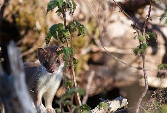 Comme bien souvent en photographie animalière, la surprise a été au rendez-vous puisque le troglodyte n’est jamais venu, remplacé par une hermine bien curieuse qui s’est lancée dans une partie de cache-cache au sein du tas de branches (au grand dam de mon au autofocus qui a souffert). Je vous propose de découvrir cette image, la seule valable de la série, en espérant que la prochaine hermine rencontrée sera habillée de sa robe blanche…