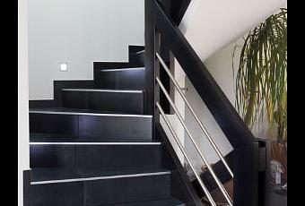 Pour votre intérieur, il y a un produit qui est employé de plus en plus, c'est le carreau en cuir noir. Il va venir en principe sur du grès cérame émaillé et donne une très bonne impression de cuir noir. C'est un carreau qui se met idéalement dans les grandes pièces. On choisira idéalement un carreau de 60 cm de côté. On peut le marier avec toutes sortes d'intérieur.