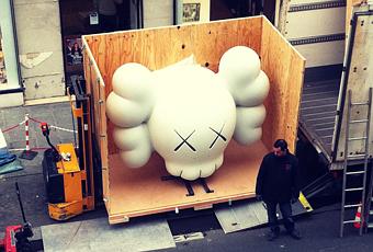 Voici un petit aperçu de l’installation que s’apprête à présenter Kaws à la galerie Perrotin à Paris, à partir de samedi prochain. Un Companion Passing Through sera assemblé pour l’occasion et l’artiste dévoilera également quelques nouvelles toiles mettant en scène son fameux Chum. Merci à Nesrine pour les photos.