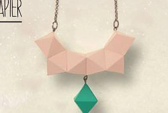 Accro au papier, aux formes géométriques, la créatrice de « Oh my Pop » est une paper designer. Habile de ses mains depuis sa plus tendre enfance, elle a imaginé une collection de bijoux en papier imperméable. Constitués de petits losanges de couleurs, chaque bijoux est assemblé ensuite sur une chaine de laiton. Elle décline ses créations dans différents coloris.