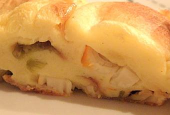 J'ai utilisé le moule cosy de Demarle. Sur le fond de celui ci déposer des dés de surimi et par dessus les poireaux émincés et revenus et pour finir des dés de vache qui rit.