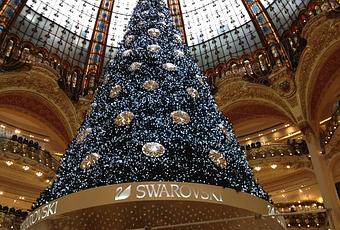 Le sapin géant trône depuis lundi soir sous la coupole du magasin Haussmann, en attendant le coup d'envoi officiel du marathon des fêtes de fin d'année annoncé pour le 6 novembre. Date à laquelle, les vitrines du magasin s'animeront.