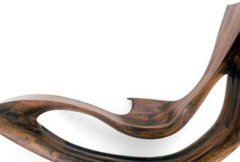 Ce rocking chair ressemble fort à du Ron Arad mais ce n’est pas du Ron Arad, c’est du Michael Coffey. D’ailleurs Ron Arad aurait plutôt utilisé du métal, en grand représentant du design post-industriel. Il n’en demeure pas moins que cette Aphrodite Rocking Lounge Chair est tout-à-fait remarquable. Ce qui est assez normal au demeurant, puisque Michael Coffey compte parmi les plus grands fabricants de meubles aujourd’hui. Il faut savoir que ses créations s’arrachent à prix d’or sur le marché de l’occasion, dans des lieux tels que Christie et Sotheby. Michael Coffey est né et a grandi à New York. Dès son plus jeune âge il s’intéresse à la sculpture sur bois. Il a été influencé par les artistes de la côte Est comme George Nakashima, Wendell Castle, Wharton Esherick, et Walker Reed, et, sur la côte ouest, par des sculpteurs comme Sam Maloof et surtout de Jack Rogers Hopkins, auquel il voue une véritable admiration. Cela fait aujourd’hui une trentaine d’année que Michael Coffey sculpte le bois, et cette Aphrodite donne un joli aperçu de l’excellence de ses créations. On remarquera en particulier l’asymétrie très subtile et très harmonieuse de la création. Ne ratez pas la vidéo à la fin du billet, qui donne un aperçu plus général de l’artiste.