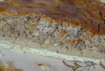 Le jour-même, sortir la boule de pâte 1 h avant pour qu'elle soit moins dure à étendre, l'abaisser au rouleau, la mettre dans un moule recouvert de papier sulfurisé et réserver au frais le temps de préparer la garniture :