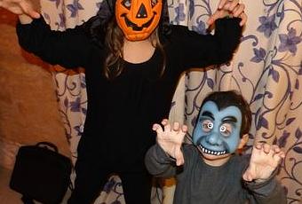 Les enfants sont tout excités et jouent à se faire peur avec des masques abominables, eux qui, en dessous, sont si mignons .... et ils y parviennent. Etrange comme pour un petit garçon comme Benjamin, la fiction est proche de la réalité !