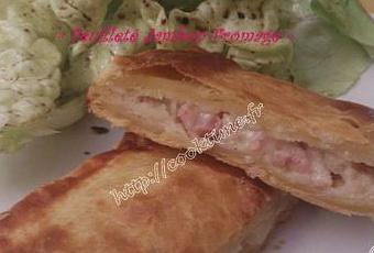 Désposer une petite cuillère à soupe de garniture jambon / fromage. Recouvrir avec un carré de pate. Coller les deux pates.