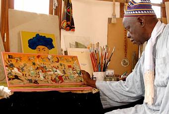On peut admirer ci-dessus, l'artiste Lo Ba au travail et ci-dessous, l'artiste Mor Gueye.