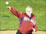 De ce fait, Georges W. Bush a eu l'honneur de lancer la première balle frappée par le dominicain Manny Acta.