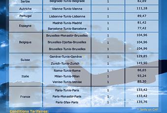 Ci dessous le tableau de toutes les offres promotionnelles de vols Tunisair en cette même période.
