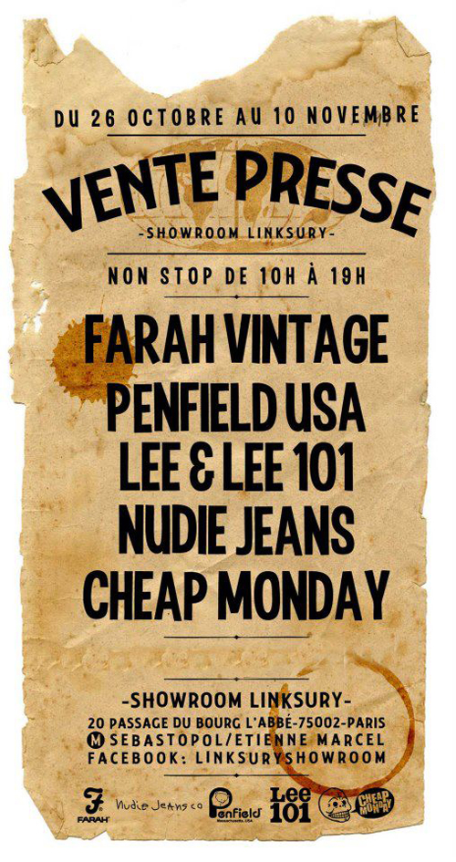 Quand ?Du 26 octobre au 10 novembre 2012 (10h/19h) - Fermé le dimancheOù ?Showroom Linksbury20 passage du Bourg l'Abbé75002 Paris>>> Ici <<<Métro :Réaumur Sébastopol (lignes 3 & 4)Etienne Marcel (ligne 4)