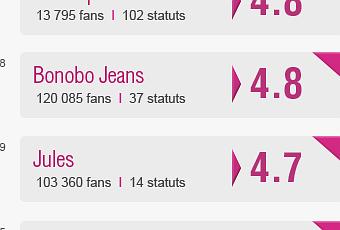 Pas plus de 0,1 point ne sépare les marques de prêt-à-porter dans ce classement où seules trois enseignes émergent vraiment : Naf Naf, Mim et Jennyfer, respectivement 1ère, 2ème et 3ème de ce classement. Mais à l’image des 17 autres, ces marques ont un community management de base semblable : moodboard des tendances, focus sur un article ou revue de presse animent régulièrement leur page.