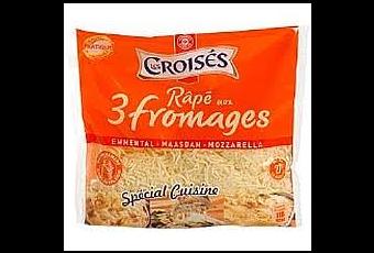 * Quelques poignées de râpé 3 fromages Marque repère® (Emmental, Maasdam, Mozzarella)