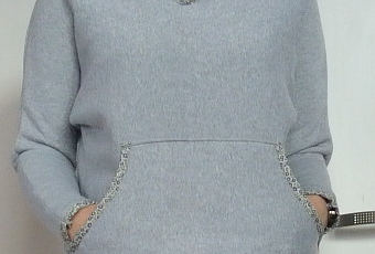 J’hésite un peu entre une petite poche poitrine (jolie mais surtout décorative) et une poche kangourou (plus pratique).