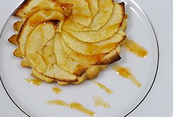 Le plus important, c'est la finesse de la taille de la pomme. Eplucher votre pomme entière. La couper en 2. L'évider et la poser à plat. Découper des tranches les plus fines possibles... Disposer les pommes sur la pâte. Saupoudrer d'une pointe de sucre et enfourner th 210°. Déguster tiède avec une pointe de confiture d'abricots...