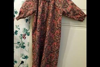 Ici, une forme classique mais pas encore réalisée pour Romane : une robe-housse à encolure élastiquée, et manches trois quarts à terminaisons elles aussi dotées d'un petit volant qui devrait s'arrêter au desssus du coude.
