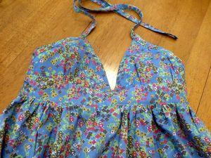 Noël arrive à grands pas, je commence à planifier tout ce qui me reste à faire ... En particulier de petites robes légères pour Romane. La deuxième réalisée cette semaine est une robe à bretelles et dos nu, que j'ai assemblée pourla première fois.
