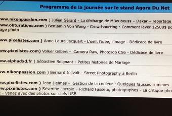 Une nouvelle journée commence au salon de la photo, et le programme est encore bien chargé sur le stand de l’Agora Net : au programme : Anne Laure Jacquart, Julien Gerard, Sébastien Roignant…