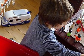 Il gagne en indépendance et joue parfois pendant des heures et tout seul avec ses Playmobils (ah oui, il veut être pompier. Comme 90% des garçons de son âge j’imagine. Ce qui nous vaut une liste au Père Noël peu ou prou équivalente à tout le catalogue de la marque. Pompiers et police en tête, suivi par la ferme et les engins de chantier. Et les pirates aussi. J’oubliais. Et comme il a compris que c’était tout de même – un peu – beaucoup, il a échelonné jusqu’à Noël 2015. Prévoyant, il est, mon fils).
