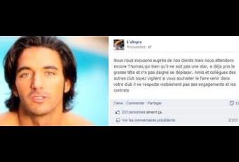 Le travail de Thomas depuis sa sortie de Secret Story saison 6 est, de ce que l'on sait, de faire, uniquement, acte de présence dans des discothèques en France. Pour cette présence il est, bien évident, rémunéré. Sauf que le jeune homme n'est pas venu lors de l'une de ces soirées et la discothèque, "L'Alégra", n'a pas hésitez à clacher Thomas sur Facebook !