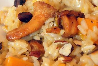 À force de voir passer des risottos au potimarron, j’ai eu envie de tester, j’ai donc lu plusieurs recettes, mélangé le tout, ajouté ma touche perso et on c’est régalé. Alors oui la girolle c’est plus du printemps que de l’automne, mais bon j’en avais dans mon congélo, c’était l’occasion de les utiliser… en plus le goût ce marie vraiment bien.