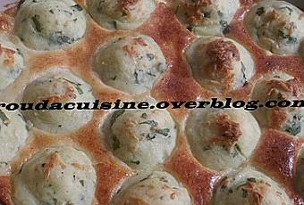 Préparation: Faire cuire les pommes de terre pelées dans une eau salée. Les égoutter puis, les écraser avec un presse- purée, rectifier l'assaisonnement. Rajouter les portions de fromage, 50g de fromage râpé et le persil ciselé. Mélanger le tout et former des boules. Disposer dans un plat à gratin beurré. Napper du mélange lait, oeuf, fromage, sel et poivre.
