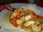 Faire revenir de l'oignon avec un peu d'huile, rajouter les crevettes décortiquées et de la tomate pelée, épépinée et découpée en petits cubes ....