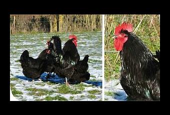La Géline est une belle plante : " une teinte uniformément noire avec des reflets d'un bleu métallique ,de taille sur-moyenne , à tarses gris ardoise nus et lisses ,tête fine et allongée ,dos large ,plumes fines et serrées." C'est qu'elle est aussi belle que bonne ,la demoiselle !