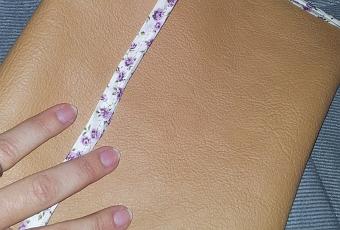 Le cuir a beau être souple et de bonne qualité, 4 mm de cuir plus une couche de doublure (même en satin) et encore l’épaisseur due au biais et ma machine peine à assembler ces différentes strates !