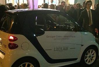 Une version unique de la smart fortwo Electric Drive aux couleurs de l’Atelier de l’Eclair était exposée lors du cocktail d’inauguration. Un classique de la pâtisserie française revisité et une voiture originale fabriquée en France…