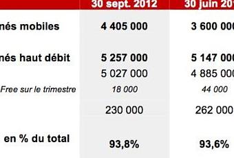 Au 30 septembre 2012, le Groupe compte 4 405 000 abonnés à ses offres mobiles, soit 6,4%* du