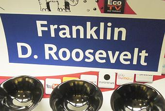 La station Franklin Roosevelt, située au pied des mythiques Champs-Elysées a subit un léger relooking… Elle a revêtu les couleurs de la marque coréenne, l’occasion pour cette dernière de promouvoir deux de ses secteurs phares : les téléphones mobiles et la Smart TV.