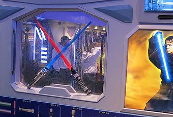 Et bien il aura pas fallu attendre longtemps pour voir débarquer les jouets Star Wars chez Mickey ! A disneyland maintenant tu peux construire ton propre sabre laser :