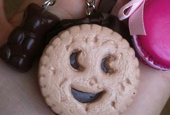 * J'ai trouvé Aimy sur Hellocoton. Elle fait des bijoux gourmands en Fimo (de la pâte polymère...bon ok, ça t'avance pas! En gros c'est de la pâte à modeler colorée qui durcit au four! c'est mieux comme ça?). Attention ça ne se mange pas hein! (toi pas faire couneries!), ça se porte.