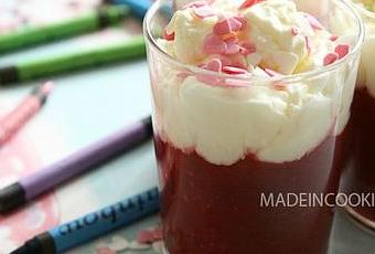 J'adore ce dessert! C'est juste de la compote à tous les fruits surmontés d'une chantilly. Je ne sais plus mais, je crois que c'était la marque Andros. Après tout ce n'est pas compliqué, une compote et une chantilly maison devraient faire l'affaire. Très très sympa, je risque de refaire ce dessert très souvent.