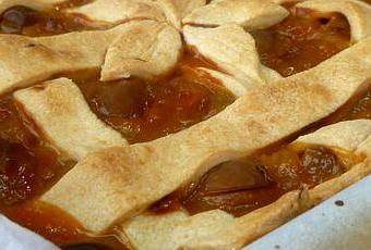 Etaler la pâte et la disposer dans le moule recouvert de papier sulfurisé. Couper les 15 mirabelles en 2, retirer le noyau. Couper les abricots en 2 et retirer le noyau. Peler les pommes si elles ne sont pas bio (les miennes sont de mon verger donc on peut garder la peau. Oter les pépins. Couper en morceaux. Garder quelques cubes de pommes de côté. Faire une compotée avec les fruits et le sucre roux. Laisser bien réduire puis verser sur la pâte. Disposer les morceaux de pommes dessus ainsi que les 5 mirabelles coupées en 2. Avec le reste de pâte, détailler des longues bandes et faire un quadrillage, on peut en mettre + que moi pour faire comme une tourte. Faire cuire 45 minutes à 210°C.