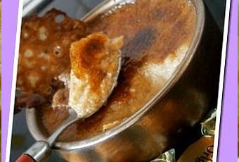- Au moment de servir recouvrez le dessus de cassonade et faites caraméliser le sucre au chalumeau ou sous le grill du four.