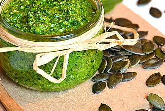 - Faire griller les graines de courge à sec dans une poêle pendant 3-4 minutes, en les retournant de temps en temps. Les mixer dans un robot.