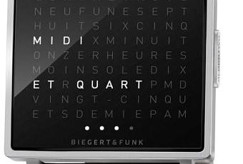 QLOCKTWO un produit de BIEGERT & FUNK permet de marquer un temps d’arrêt et d’avoir une autre conception du temps. L’affichage typographique relie le moment présent au mot écrit et en fait une déclaration. « Il est huit heures trente» ; QLOCKTWO indique l’heure en toutes lettres et dispose de bien d’autres fonctions.
