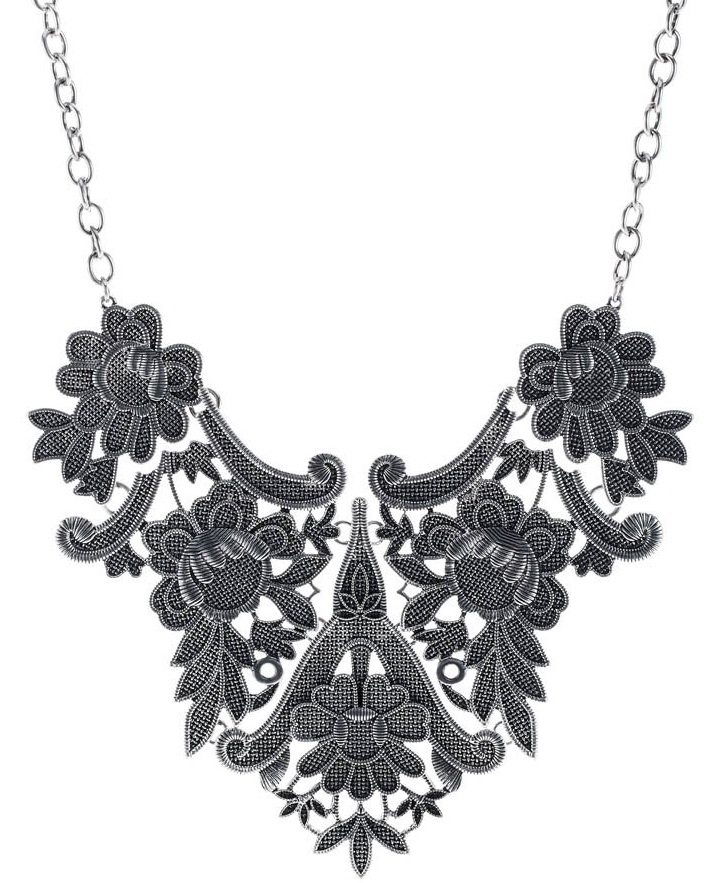 -The breastplate necklace is a heavy jewel inspired by warrior’s armors and was a protection against the blades of their enemies but it was also sometimes seen as the sign designating the chief. Generalized by the jewel version of the Peter Pan collar, the breastplate was progressively back on the catwalks and is now the new it accessory. This necklace will enlighten all your simple outfits and will help go through winter time. The goal is to be the biggest possible so it can really be seen on your outfit. By day you can wear it on sober clothes such as a pullover and a pair of jeans for example, letting the necklace define your style or mood. By night the breastplate becomes a bling-bling accessory and is shiny, metallic and you can wear it on your clothes or on your bare skin.