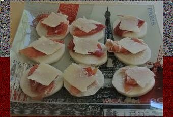 Placez sur chaque tranche de radis un morceau de jambon
