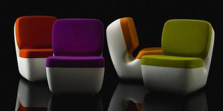 Des fauteuils carrément rétro moderne, inspirés des formes et couleurs des années 70. La structure est en polyéthylène blanc, les coussins en laines et de couleurs vives. Nimrod présente une forme épurée, et l’assise est allégée en sa base par des formes arrondis et douces… Le fauteuil fait également penser à un petit téléphone !