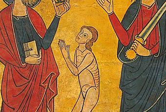 Âme suppliante entre Saint Pierre et Saint Paul, début XIVe siècle