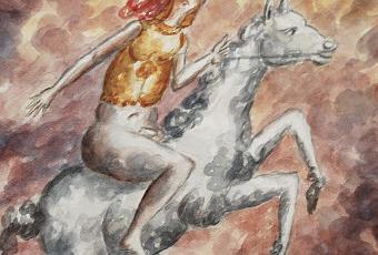 Le cavalier des nuées De chevaucher dans le ciel agité Qui sait vers quelle destinée Sans doute lui aussi à l'ignorer Pour peut-être qu'à son cheval se fier Qui saurait où il va l'emporter Dans le flamboiement de stratus Déchirés, il galope sans plus Quand au comble de son anxiété Comme un théâtre violemment éclairé Au zénith incandescent, l'apparition De la messagère sans voile la révélation Terrible de la vérité De sa cruelle nudité. A l'arrêt, cavalier et cheval stupéfaits Maintenant pétrifiés dans leur course, à jamais.