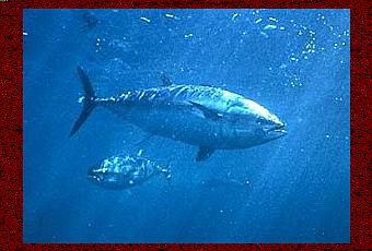 Mode de vie : le Thon rouge est trés grand migrateur qui traverse les océans de toutes la planéte. C'est en été que les thons se rapprochent des cotes. On peut les rencontrer dans 20m d'eau , voire moins quand la mange est concentrée. En fin d'été et surtout au mois d'octobre, il n'est pas rare de voir de très gros spécimens venir tout près du bord et notamment la nuit. Lorsque le Thon chasse, soit il capture directement ses proies, soit il effectue des bonds hors de l'eau pour retomber sur le banc et étourdir quelques poissons qu'il cueille ensuite tranquillement. Sa vitesse de nage peut atteindre 80 Km/h.