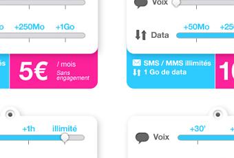 En partant d’une base incluant les SMS et le MMS en illimité pour 5€ par mois, chaque membre peut librement choisir de compléter son forfait d’un simple clic avec de la voix, de la data ou les deux.